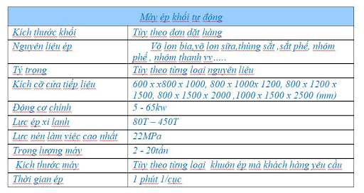 Tham khảo thông số 1 máy ép tự động, tuy nhiên chúng tôi có nhiều cỡ máy khác nhau: